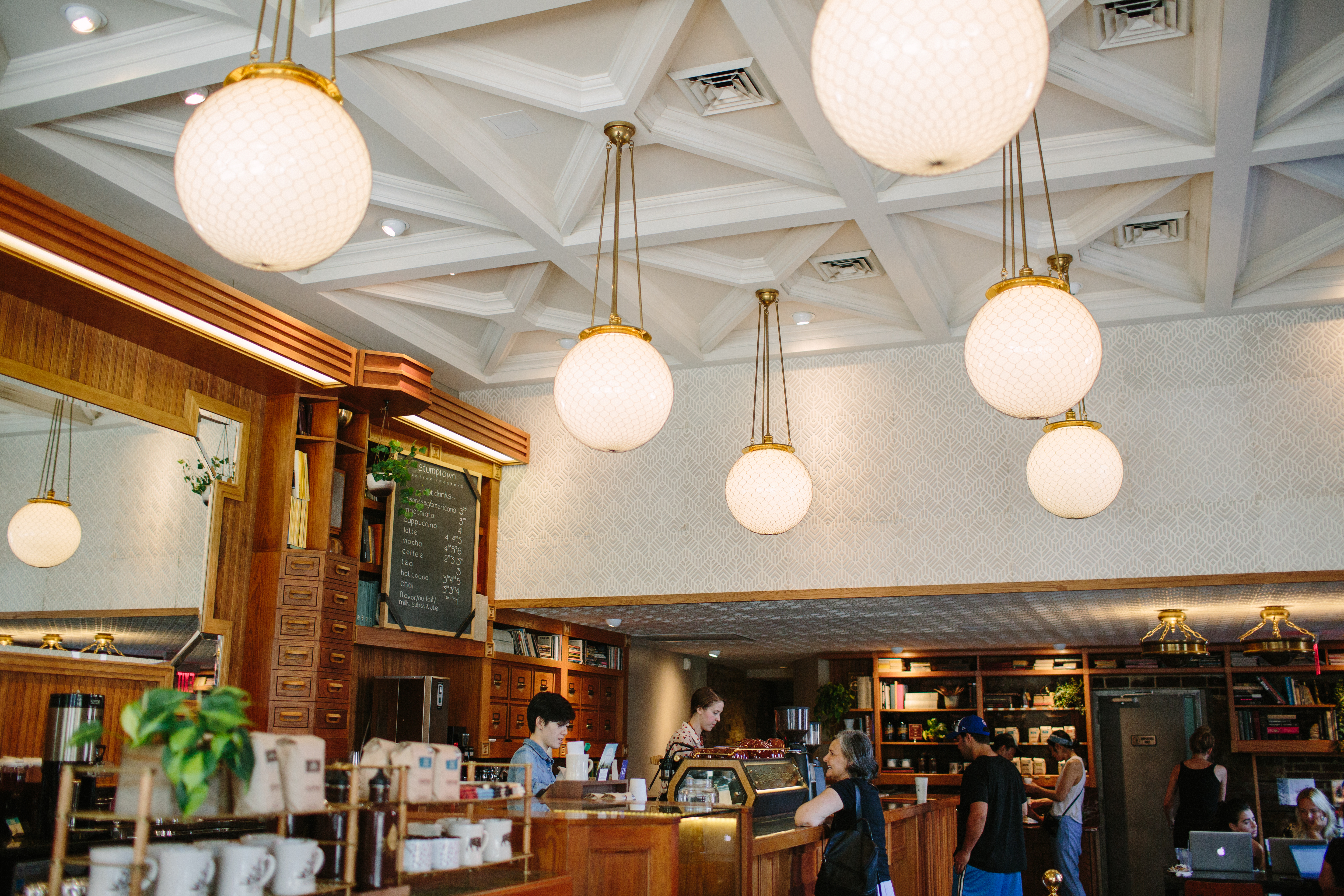 Stumptown is a coffee shop attached to the ace hotel in the west loop stumptown. Coffee shop people talk about cold brew coffee, iced americano and cafe au lait.